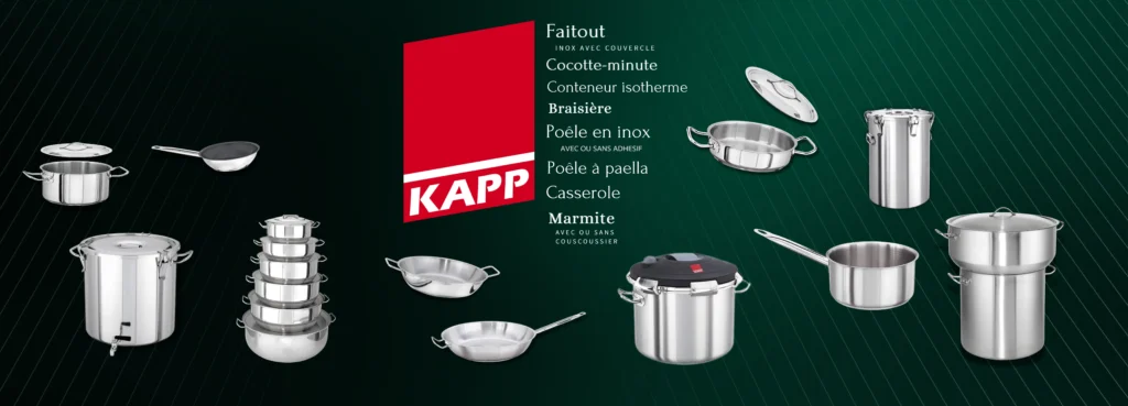Qualité Inox 18/10 : Tous les produits de cuisson KAPP sont fabriqués à partir d'acier inoxydable de première qualité, garantissant une longévité exceptionnelle, une résistance totale à la corrosion et une hygiène irréprochable.