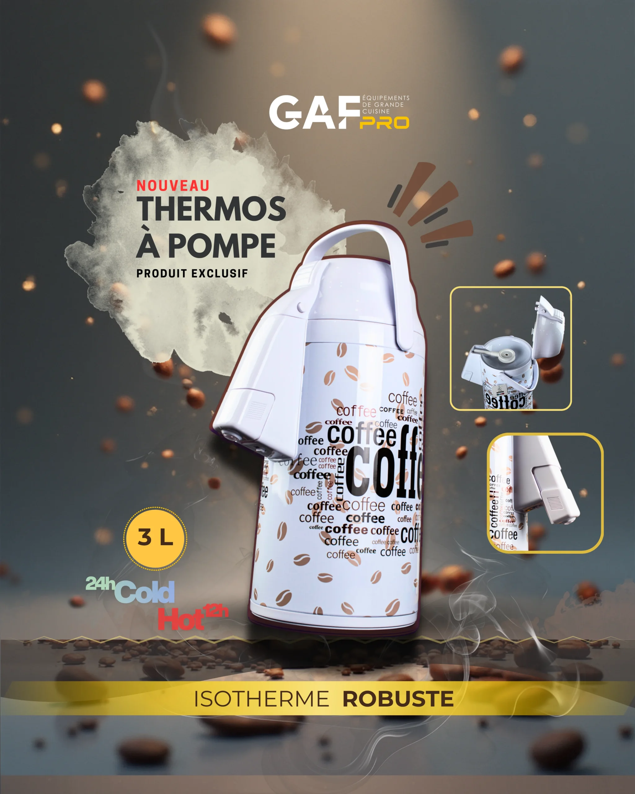 Découvrez l’exclusivité GAF PRO avec notre nouveau Thermos à Pompe haute performance. Conçu pour les professionnels exigeants et les familles actives, ce distributeur isotherme est la solution idéale pour maintenir vos boissons à la température parfaite tout au long de la journée.
